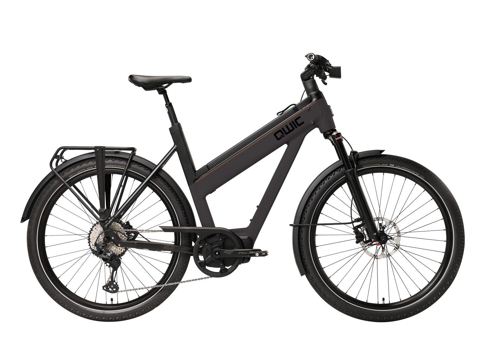 | Design | Das Atlas fällt besonders durch die äußerst innovative Integration des Akkus auf. Zum ersten Mal wird der Akku vom Unterrohr ins Oberrohr verlagert. Diese clevere Entwicklung verbessert nicht nur die ergonomische Wirkung des Atlas, gleichzeitg präsentiert QWIC damit auch das erste E-Bike Segment mit Unisex Rahmen. |